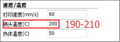 说明:如果你已经检查了回抽设置,下一个最常见的导致拉丝问题的因素是挤出机温度。如果温度太高,喷嘴中的耗材会变成非常粘稠,进而更容易从喷嘴中流出来。如果温度太低,耗材会保持较硬状态,从而难以从喷嘴中挤出来。如果你觉得你的回抽设置是正确的,但是出现这个问题,试试降低挤出机温度,降 5 到 10 度(以5为单位)这将对最后的打印质量有明显的影响。正常的PLA打印温度在190-210之间,如果温度设置过高的话耗材融化的比较彻底造成回抽不够干净,就很容易拉丝的,所以喷嘴打印温度设置合适是对打印模型的效果有直接的影响的。
