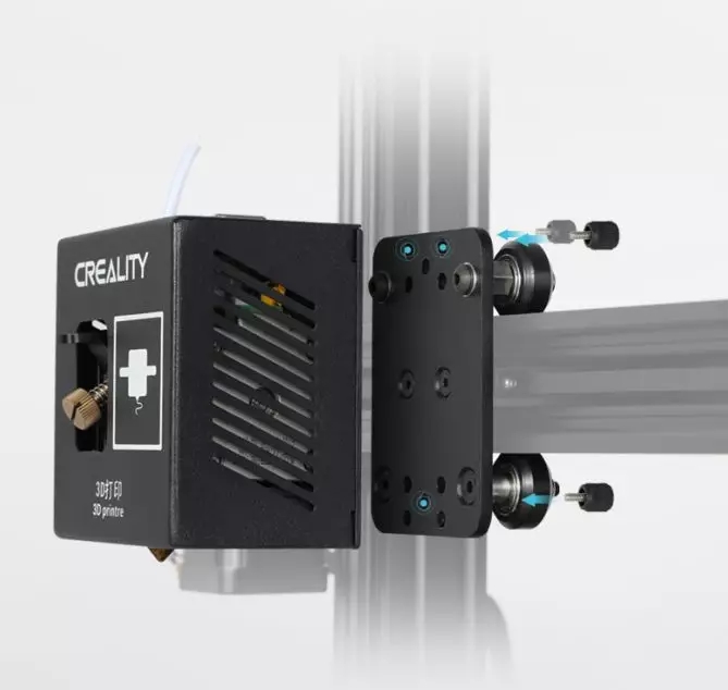 三颗固定螺丝,手拧即可拆装,30秒快速更换模组机头,3D打印机、CNC雕刻机与激光雕刻机之间随意切换。