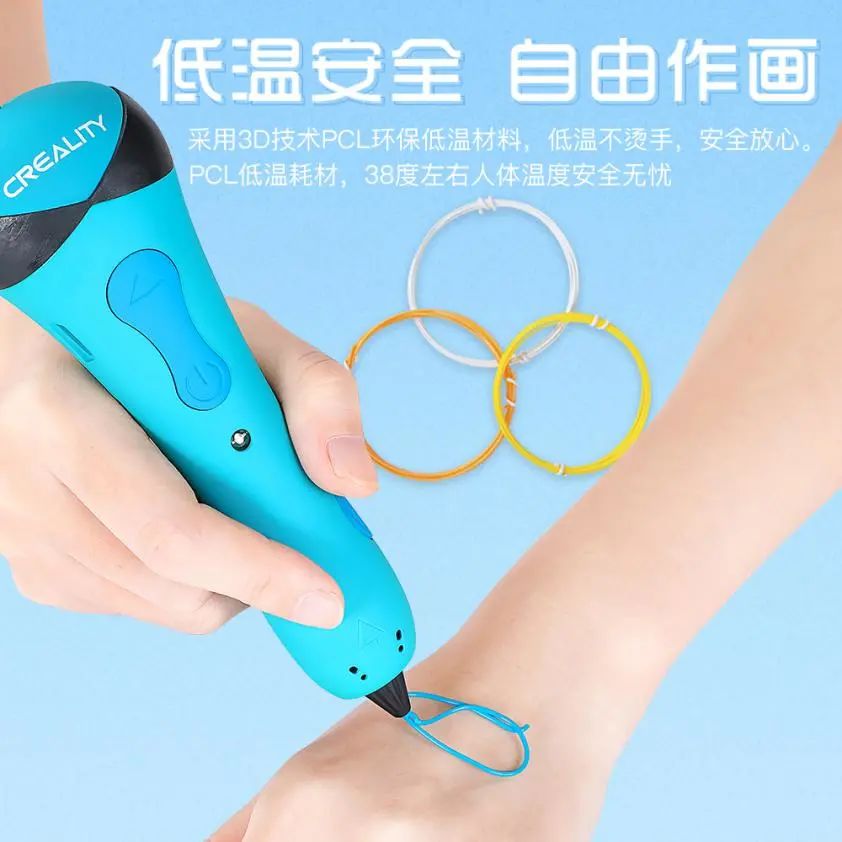 对于3D打印笔,安全性是的是家长最关切的问题。创想三维从用户角度出发,对3D打印笔专门做了防烫伤功能,38度左右人体温度安全无忧,不用担心烫手,配用的是绿色环保材料,耗材主要提炼玉米淀粉中的植物纤维经特殊工艺复合而成,不含任何有毒有害的增塑剂,安全环保可降解,无论是达人小孩都可以放心使用。