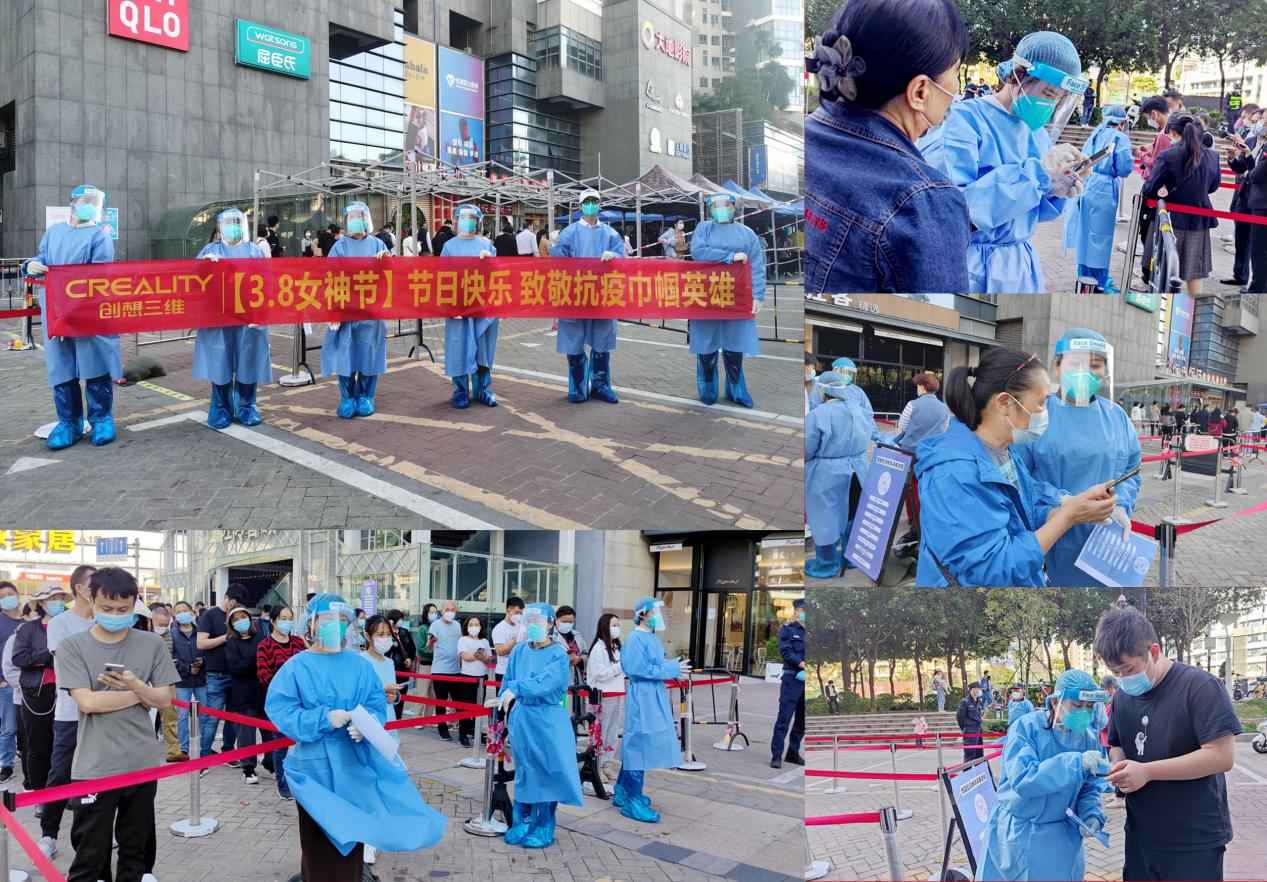 2022年深圳出现多点散发疫情态势,在安保维稳和疫情防控双重考验面前,创想三维积极响应号召,快速集结了一支疫情防控志愿者队伍,并在3月8日妇女节这天给奋战一线医护人员以及防控区域人民带来关怀和温暖。