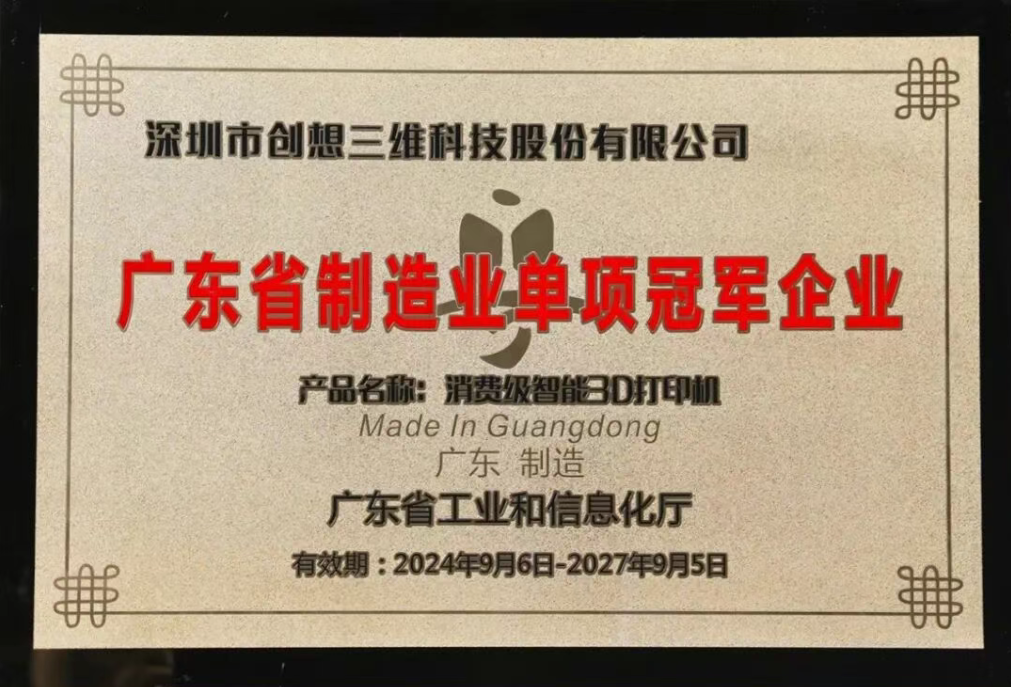 荣耀加冕 | 创想三维荣获国家级制造业单项冠军